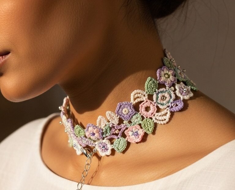 Spring Blossom Crochet Choker Necklace Pattern: A Delicate Floral Accessory