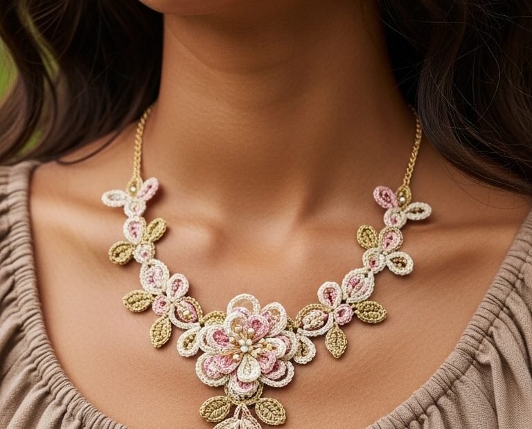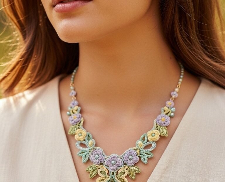 Elegant Floral Crochet Necklace: A Delicate DIY Pattern