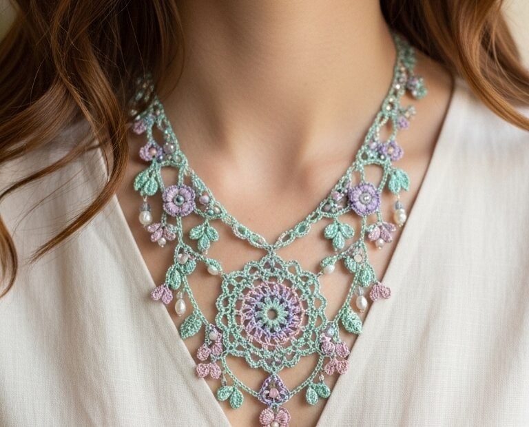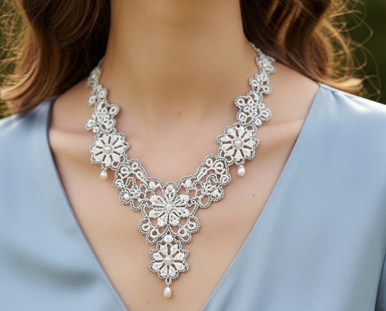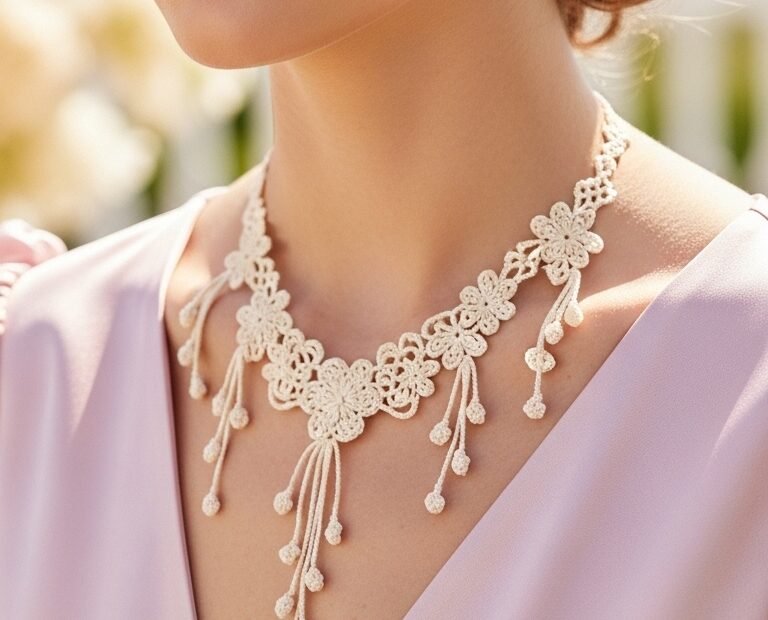 Tatting-Inspired Elegant Lace Crochet Necklace Pattern: Craft Your Own Heirloom Jewelry
