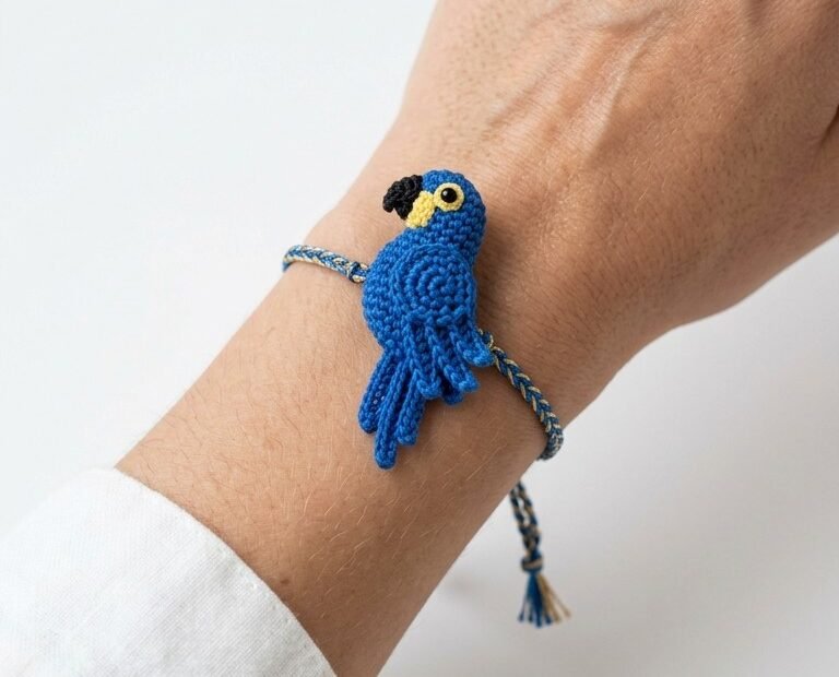 Crochet Blue Macaw Parrot Bracelet: A Tropical Amigurumi Charm