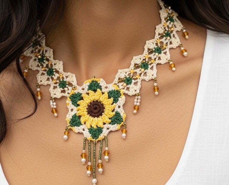 Blossom & Adorn: Handcrafted Crochet Sunflower Necklace Pattern