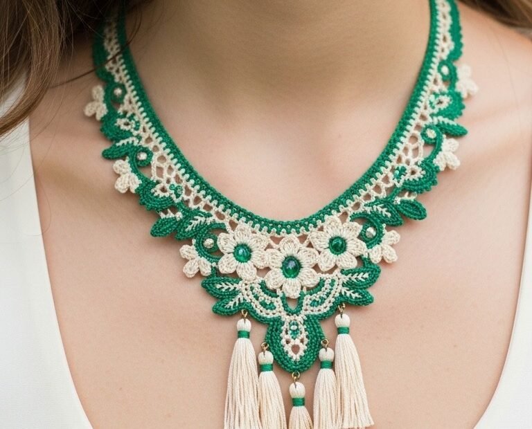 Elegant Emerald Lace Crochet Necklace: A DIY Statement Piece