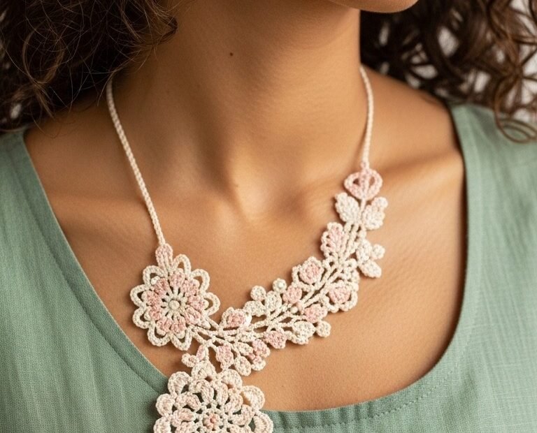 Elegant Crochet Floral Necklace Pattern – Delicate Lace Jewelry