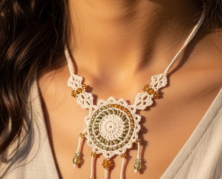 Bohemian Rhapsody: Handcrafted Crochet Medallion Necklace Pattern with Beads