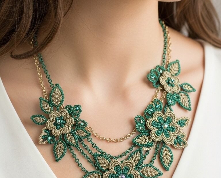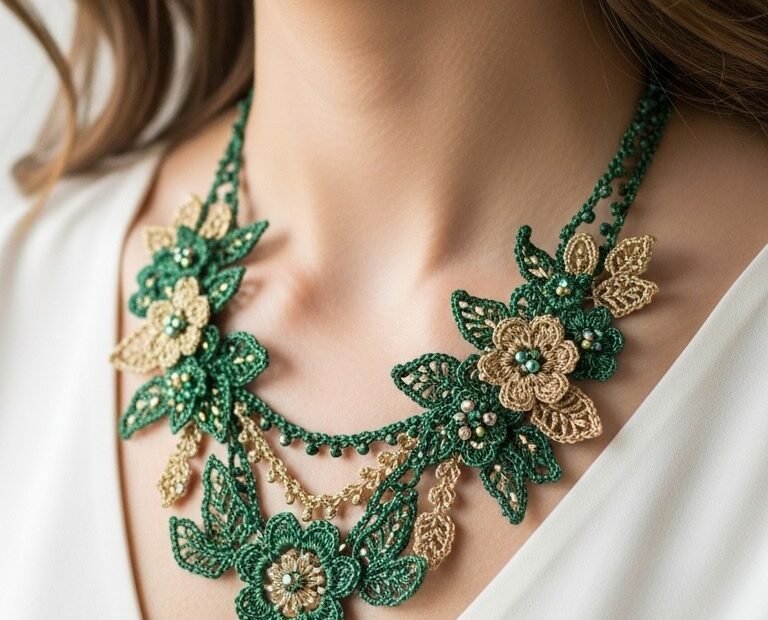 Emerald & Gold Crochet Lace Necklace: A Stunning DIY Floral Accessory