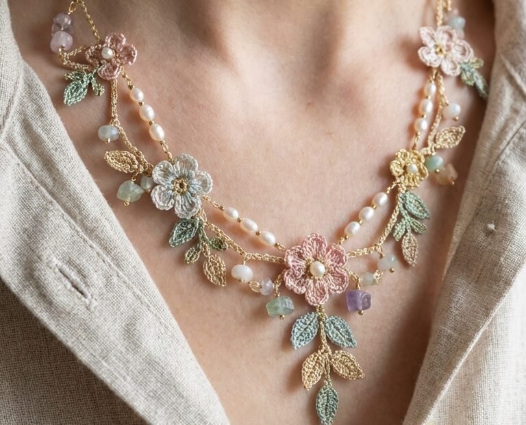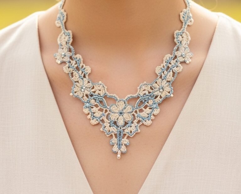 Elegance in Every Stitch: DIY Crochet Lace Floral Necklace Pattern