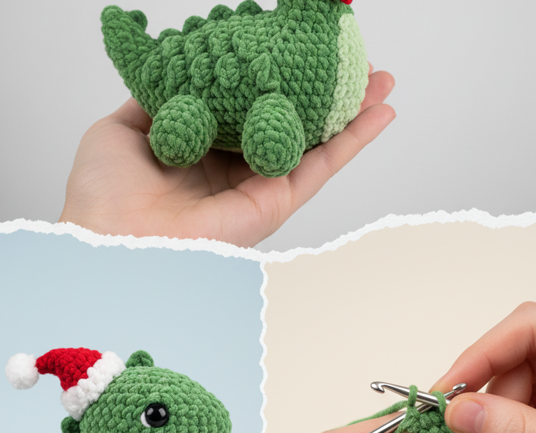 Roar-tastic Holidays: Crochet a Festive Dinosaur Amigurumi with Santa Hat